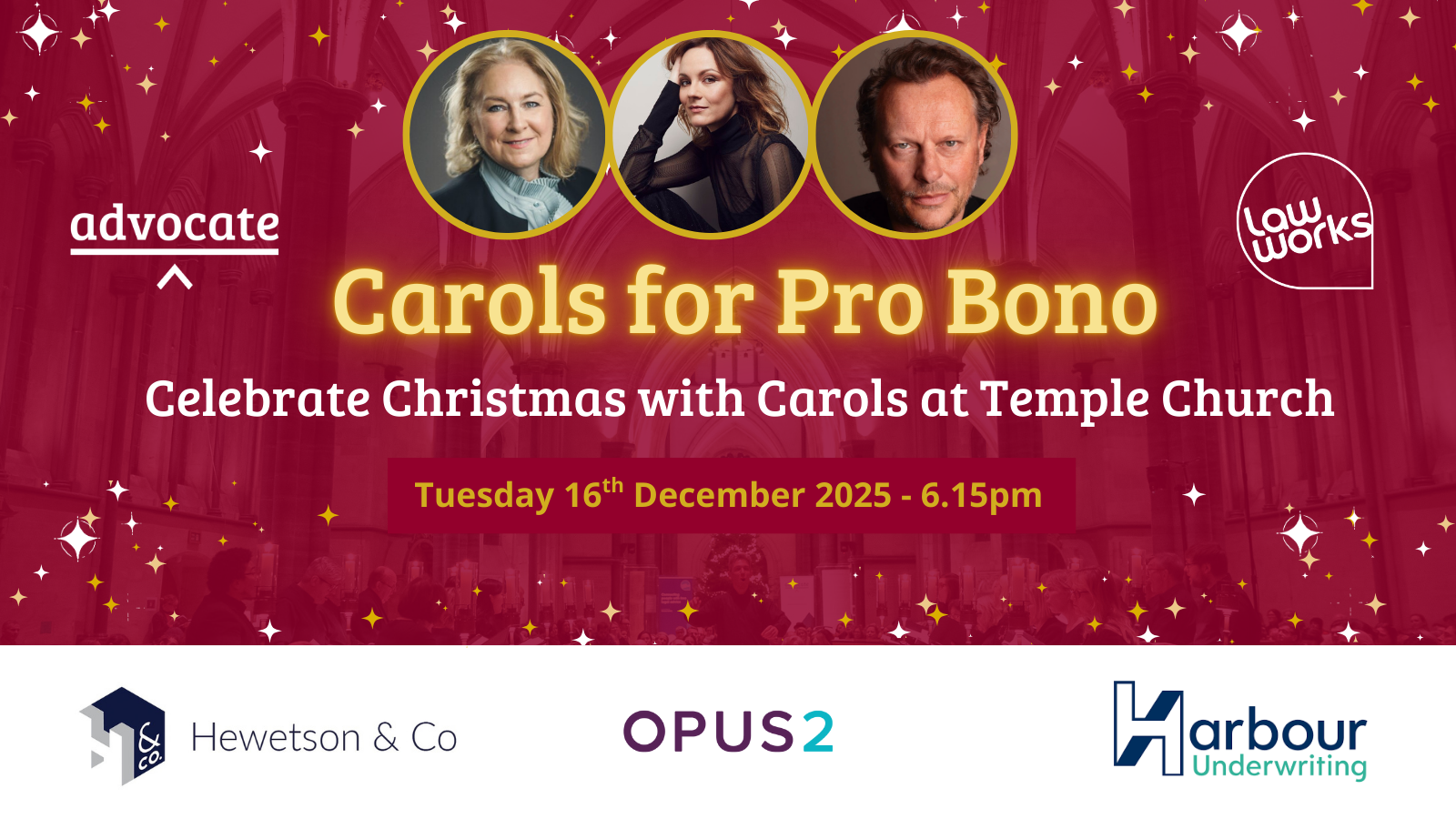 Join the two access to justice charities at the historic Temple Church in London on Tuesday 16th December for a magical evening of joyful carols, stunning musical performances and entertaining celebrity-guest readings - all in support of pro bono causes.